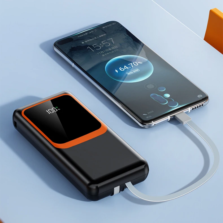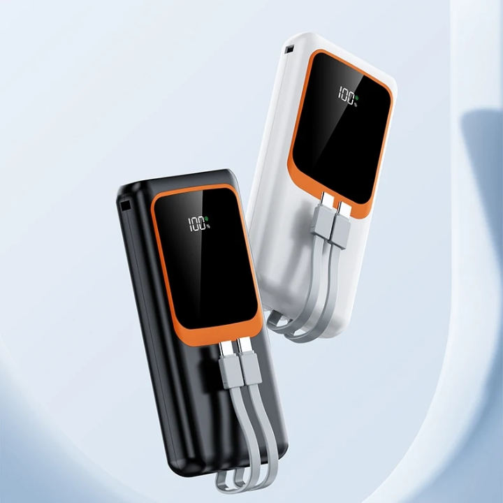 كابلات مدمجة: وداعاً لفوضى الأسلاك! يأتي الباور بانك بمجموعة كابلات مدمجة تناسب جميع أنواع الهواتف، لتكون جاهزاً دائماً.