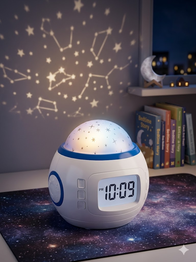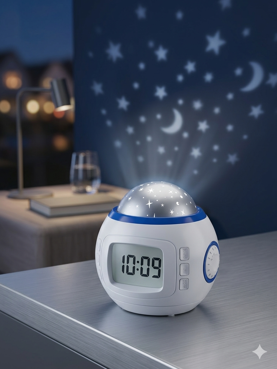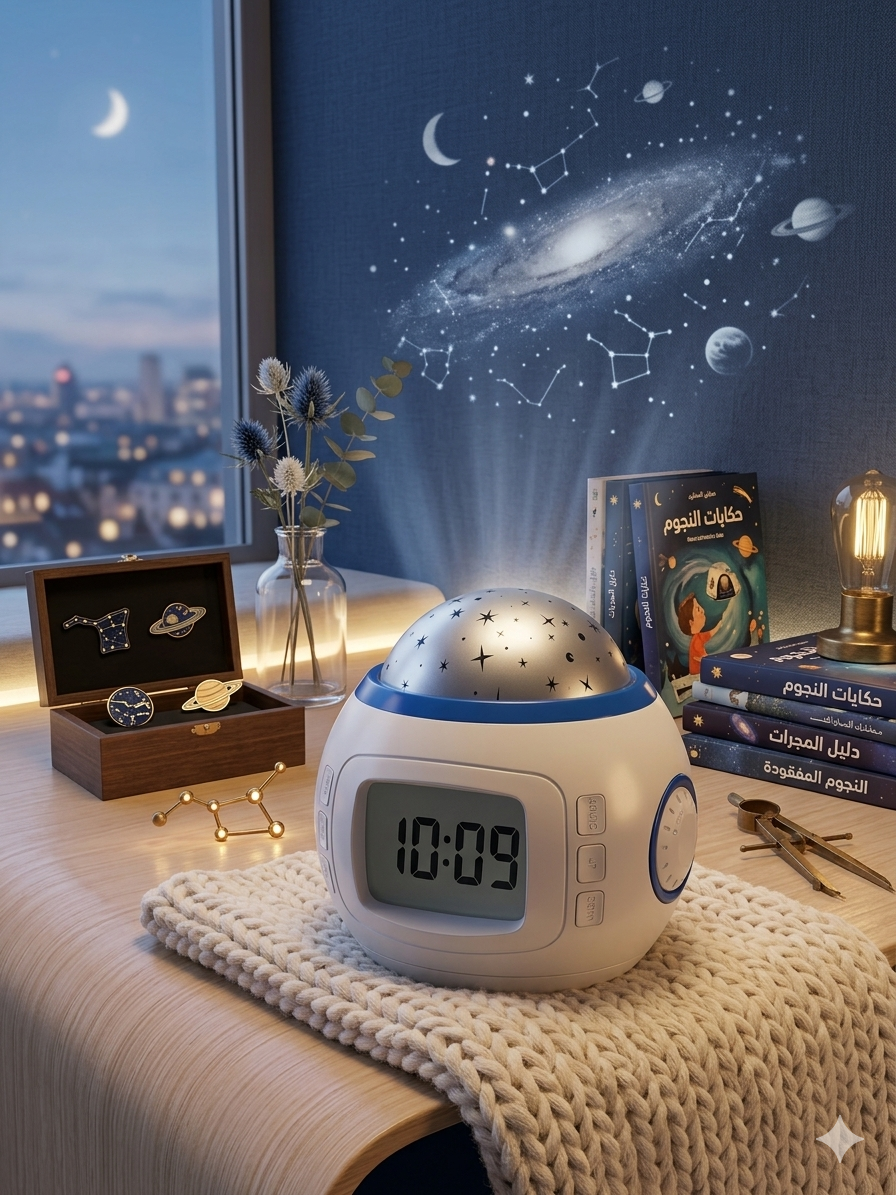 🌙 اجعل غرفتك قطعة من السماء مع ساعة “بروجكتور النجوم” السحرية! ✨