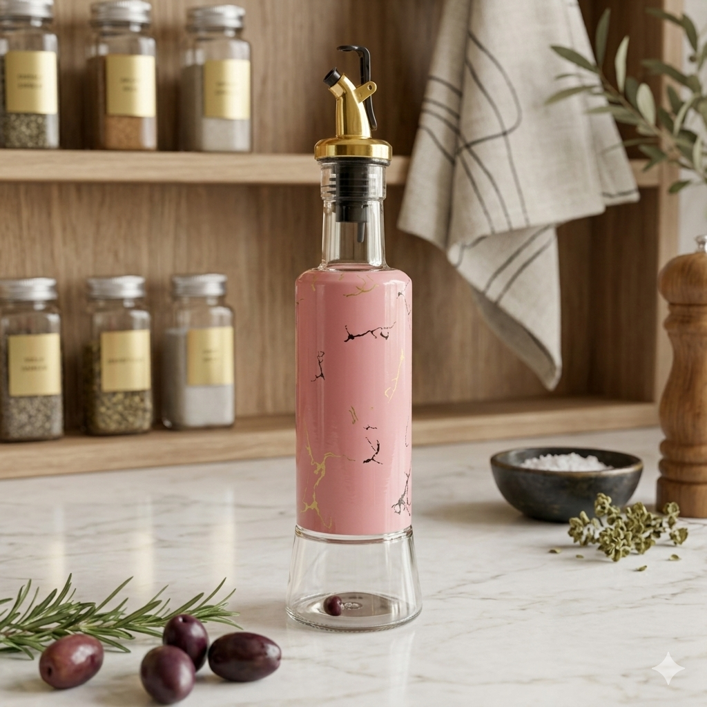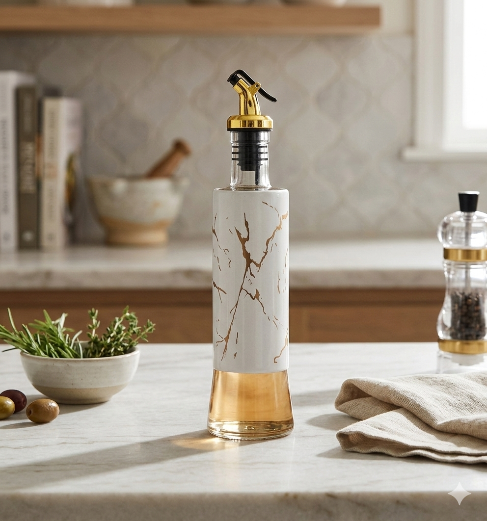 اجعلي مائدة طعامك ومطبخك ينطقان بالأناقة مع زجاجات الزيت والخل الفاخرة بتصميمها الرخامي الفريد. صُممت هذه الزجاجات لتجمع بين المظهر الجمالي الراقي والوظيفة العملية المثالية.