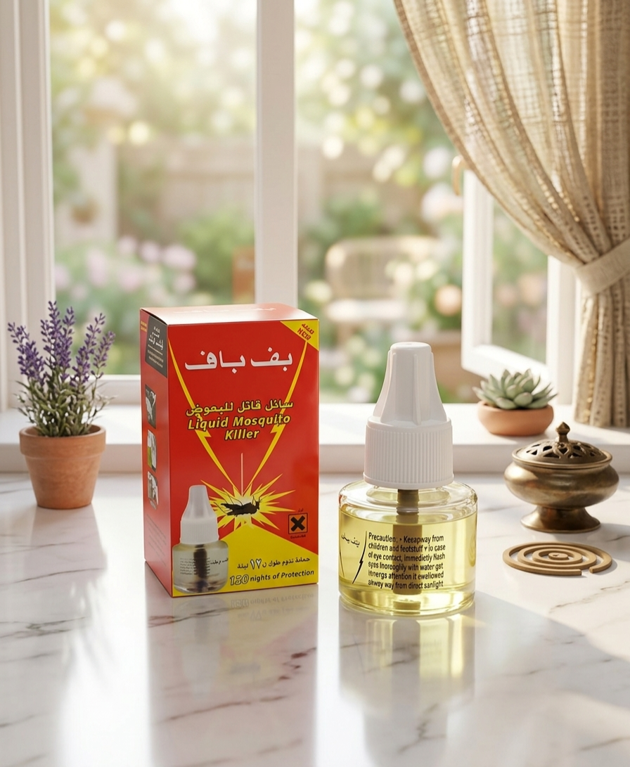 هل سئمت من طنين البعوض المزعج الذي يسرق منك ومن أطفالك النوم العميق؟ استعد راحتك مع سائل “بف باف” القاتل للبعوض، الحل الأمثل لحماية منزلك طوال الليل.