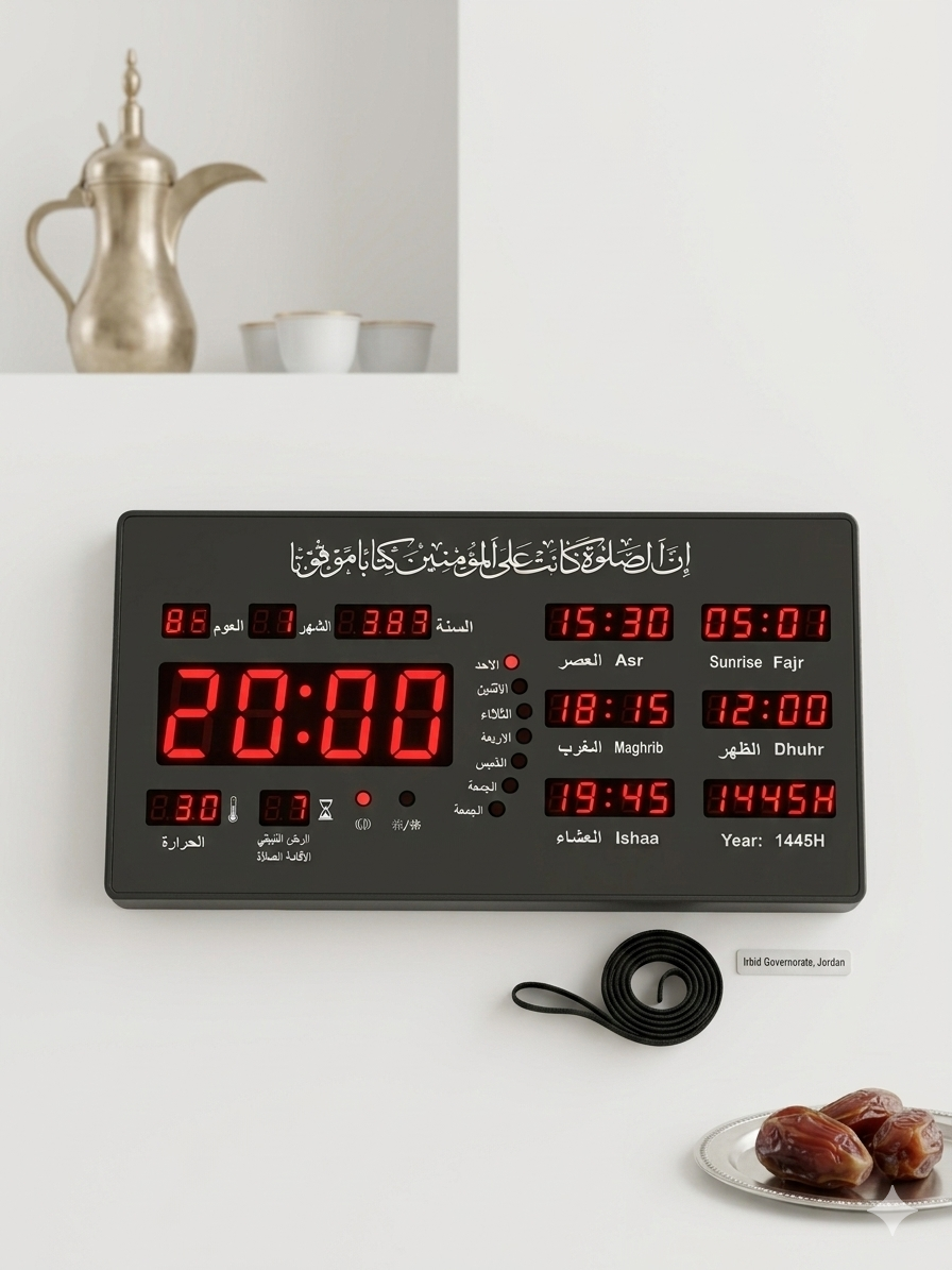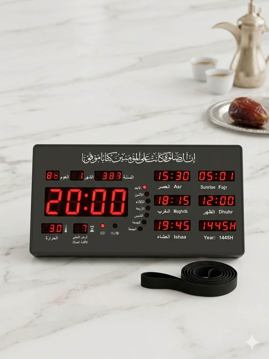 اجعل الصلاة حاضرة دائمًا في قلب بيتك أو مكتبك مع ساعة المواقيت المتطورة . صامدت عبد أكثر من مجرد ساعة؛ فهي دليل أصولي تكاملي بين التكنولوجيا والروحانية الإسلامية الأصيلة.