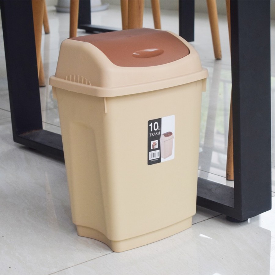 تصميم عملي (Swing Lid): غطاء دوار سهل الفتح يضمن لك التخلص من النفايات بسرعة دون الحاجة للمس الغطاء بالكامل، ويغلق تلقائياً لإخفاء المحتويات والحفاظ على المظهر العام.