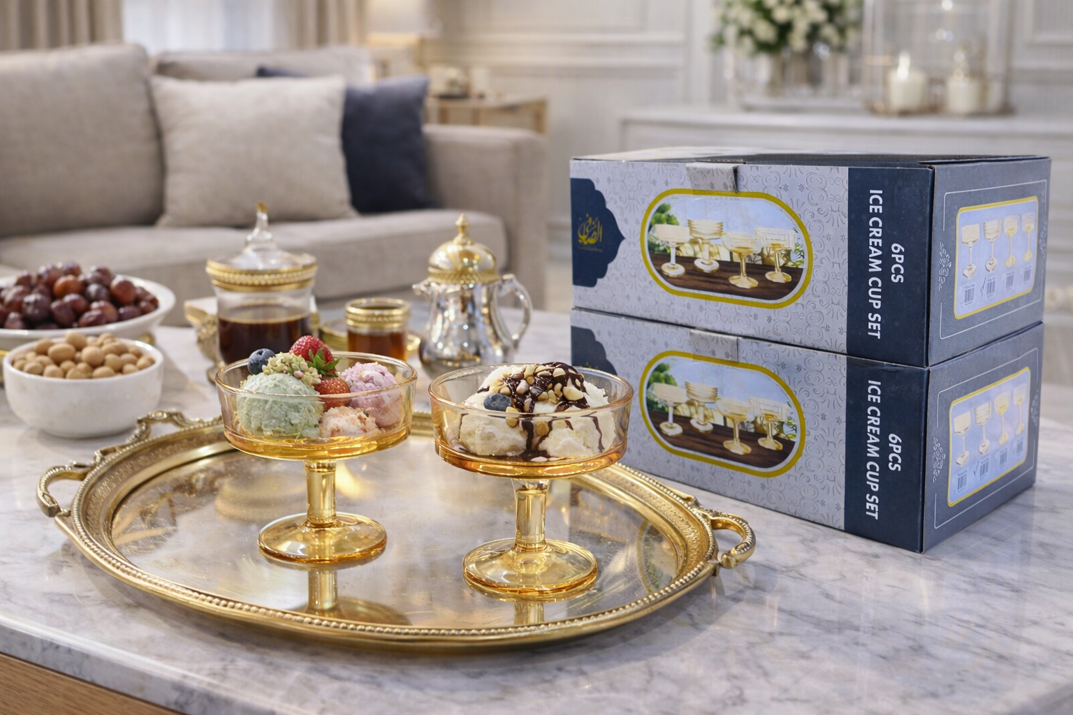 نصيحة التقديم: استخدميه مع صينية ذهبية (كما في الصورة) لتقديم متكامل يسرق الأنظار في تجمعاتك العائلية.