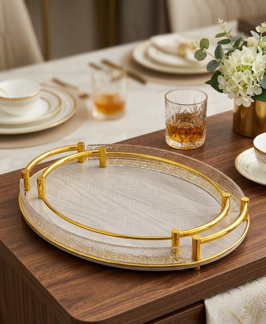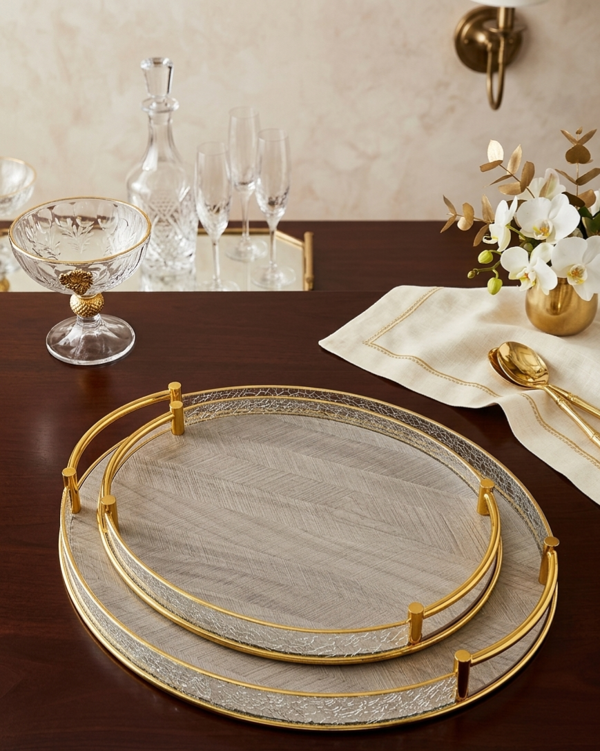 اجعل لحظات الضيافة أكثر تميزاً مع طقم الصواني البيضاوية الفاخر، المصمم خصيصاً لمن يبحث عن الفخامة العصرية والعملية في آن واحد.