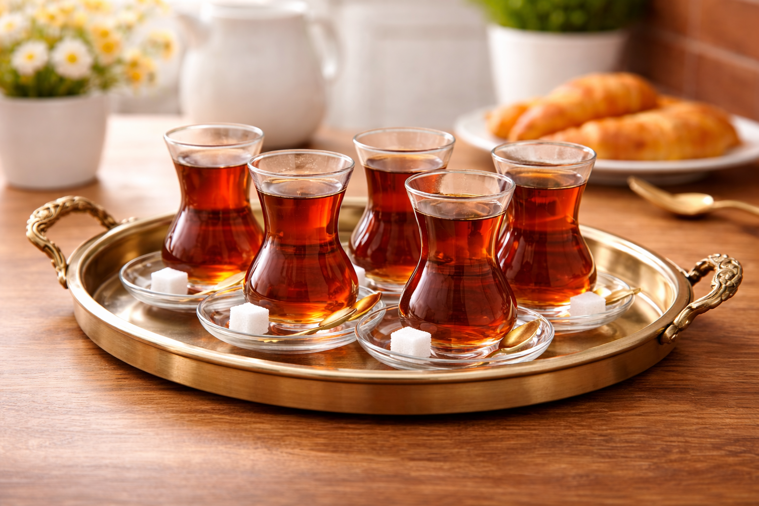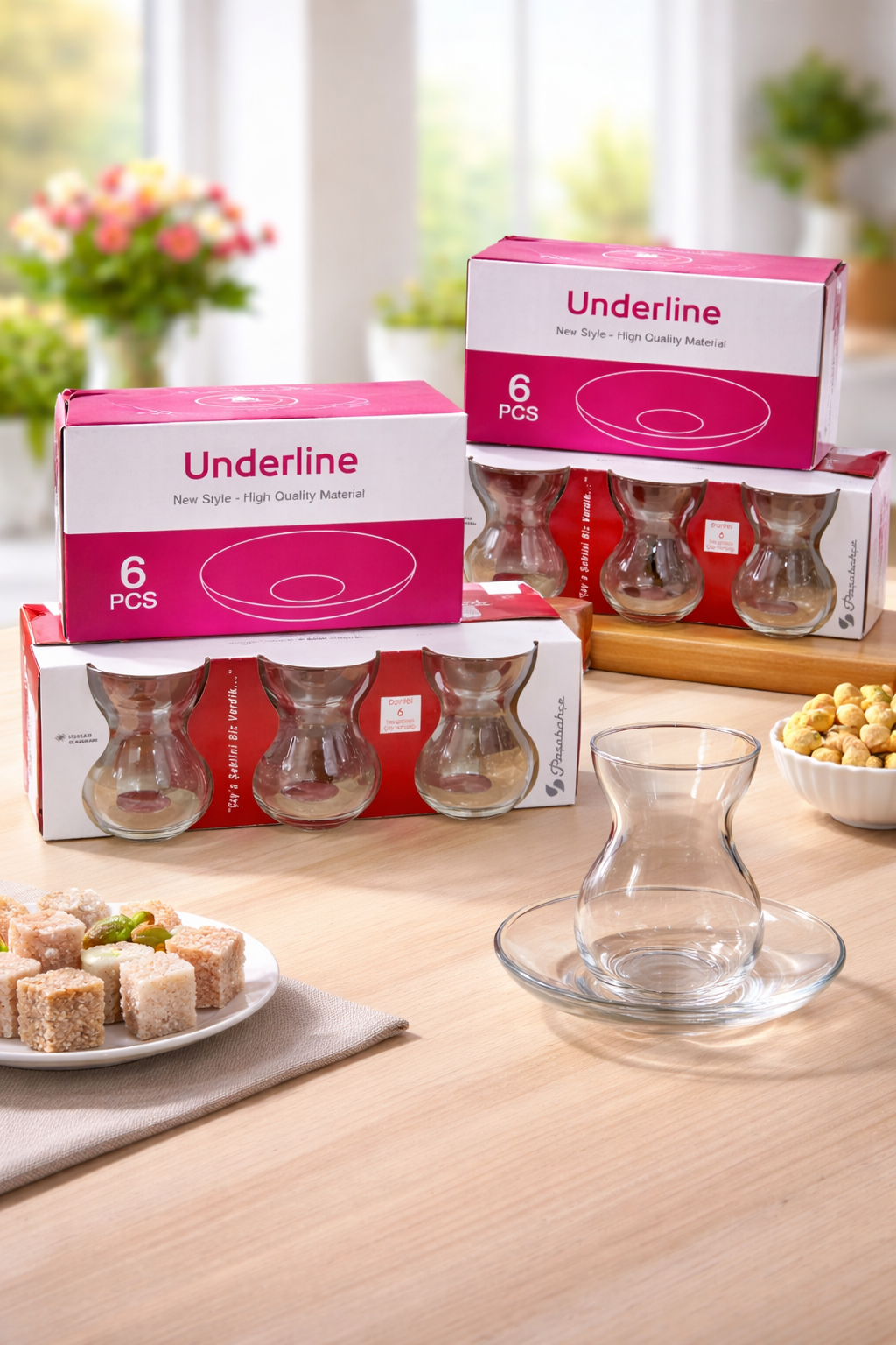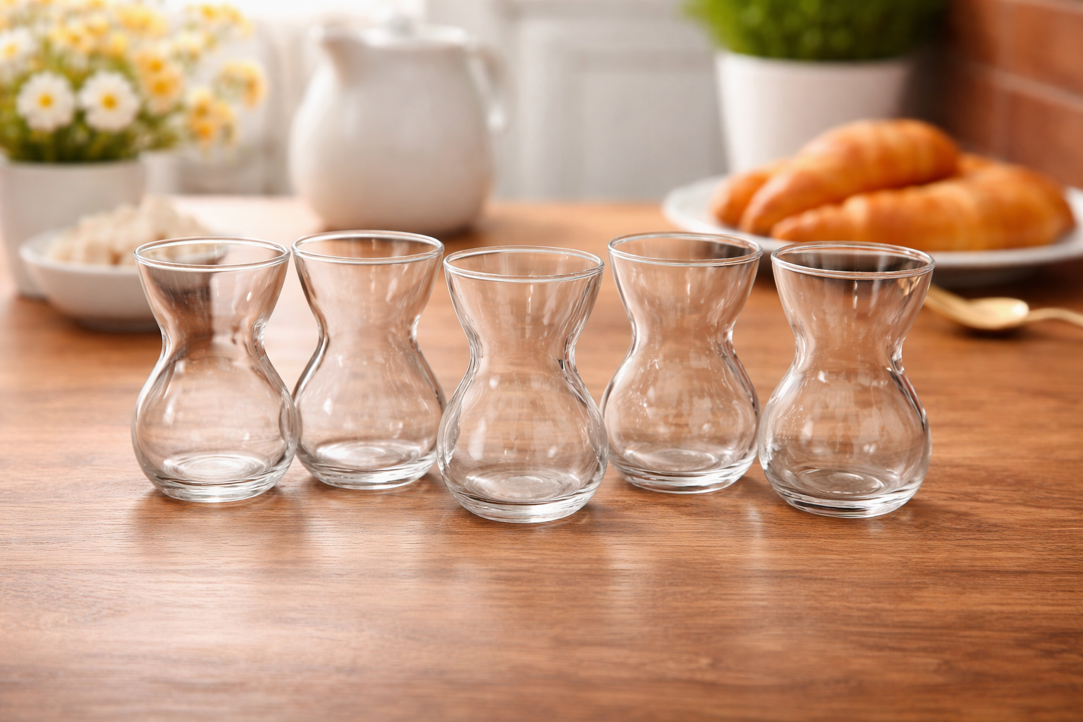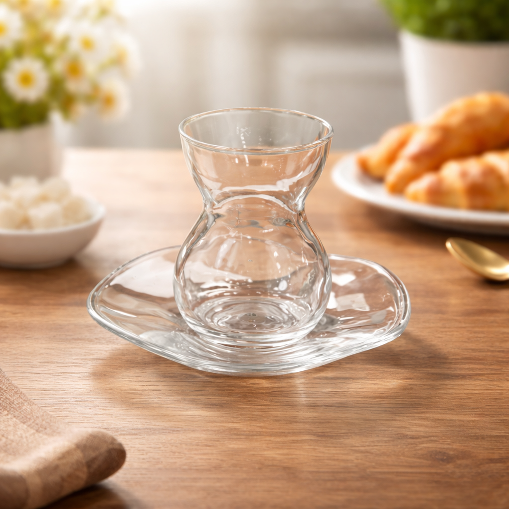 أضيفي لمسة من الرقي لجلستك مع طقم كاسات الشاي الزجاجية. يتميز بتصميمه الانسيابي الذي يجمع بين الراحة في الإمساك والمظهر الجمالي الفريد، مما يجعله الخيار المثالي لتقديم الشاي والقهوة التركية والمشروبات الساخنة بكل فخامة.