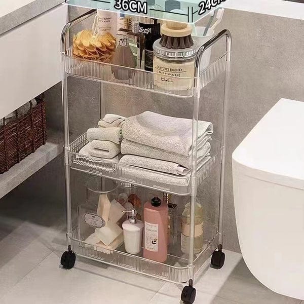 عربة التنظيم الأكريليك الشفافة – الأناقة والترتيب في قطعة واحدة! ✨