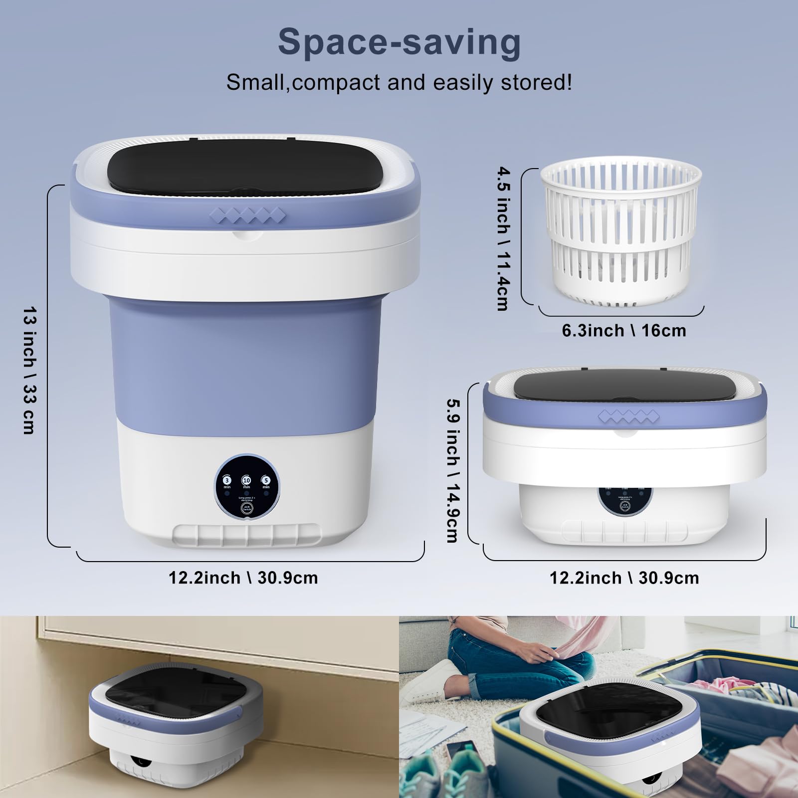 تصميم عبقري موفر للمساحة: بفضل تقنية الطي المتطورة، يمكنك تحويلها من غسالة كاملة إلى قطعة مسطحة يسهل تخزينها تحت السرير، في الخزانة، أو حتى وضعها في حقيبة السفر.