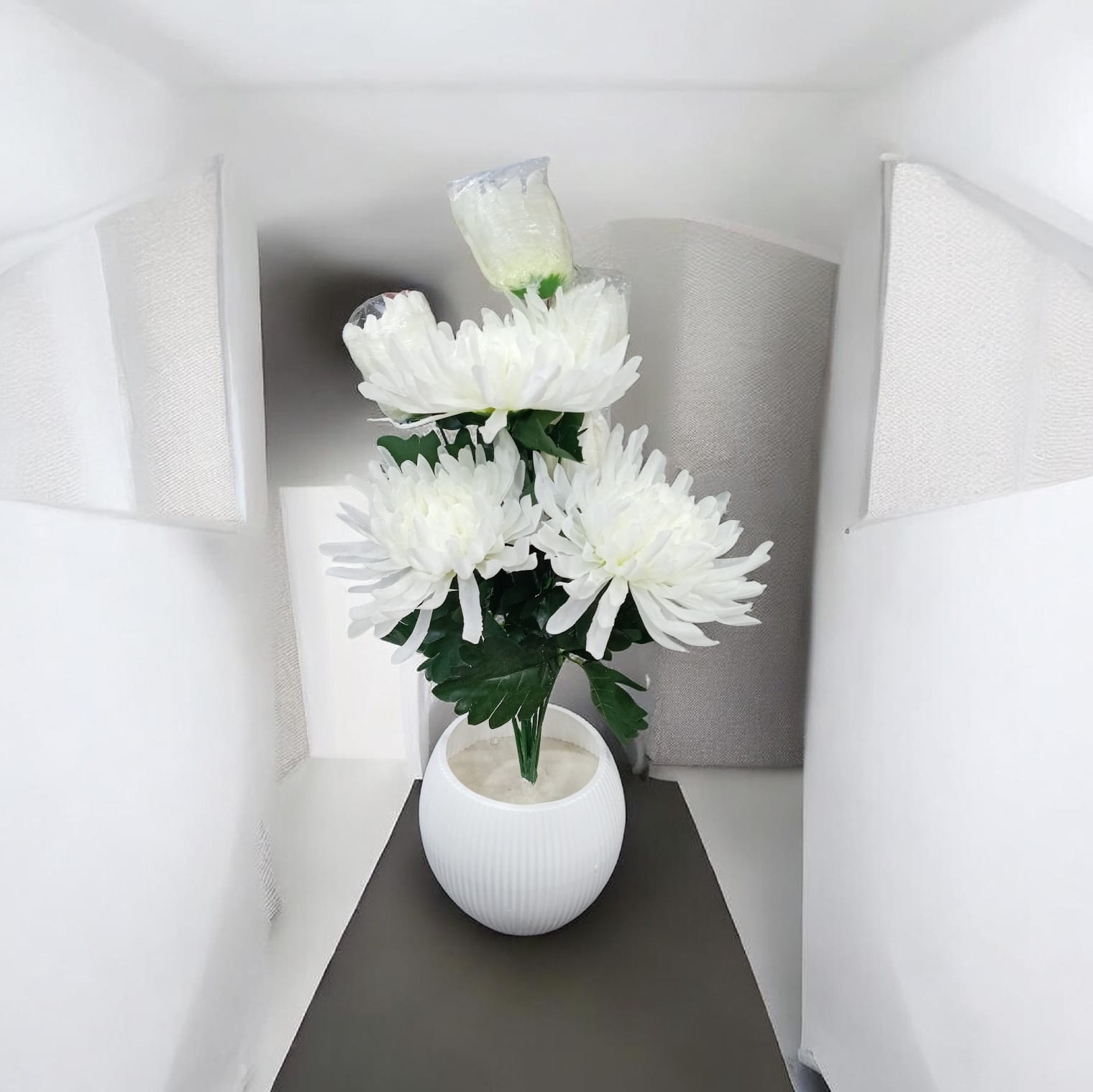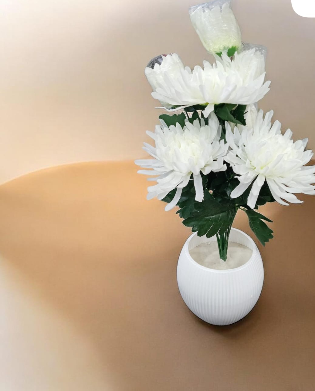 🕊️ لمسة من الصفاء: فازة زهور الأقحوان البيضاء الفاخرة