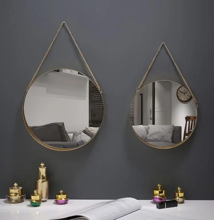 أضيفي عمقاً وأناقة لا تضاهى إلى غرفتك مع المرايا الدائرية بلمسة الذهب. تصميم يجمع بين البساطة المودرن والفخامة الكلاسيكية، ليخلق توازناً بصرياً يمنح منزلك شعوراً بالاتساع والرقي.