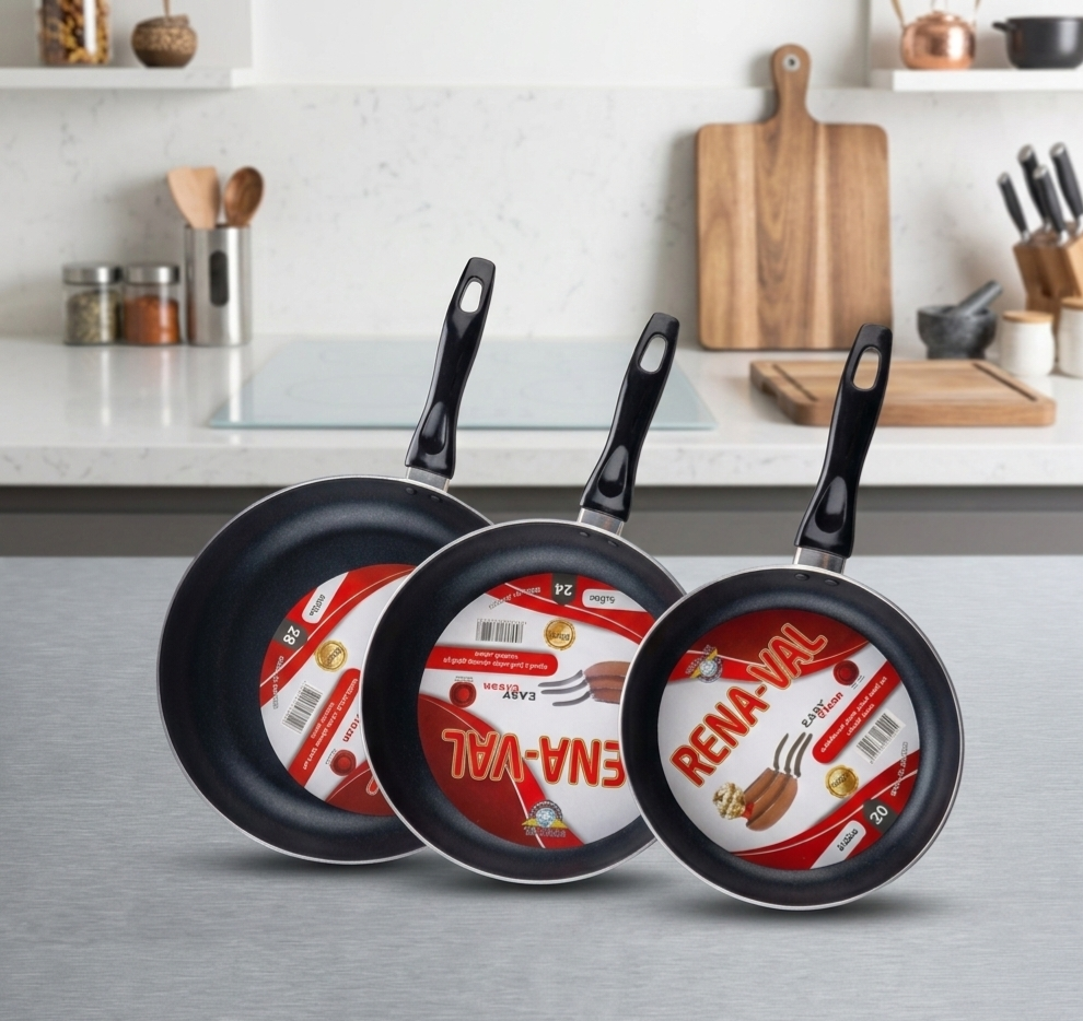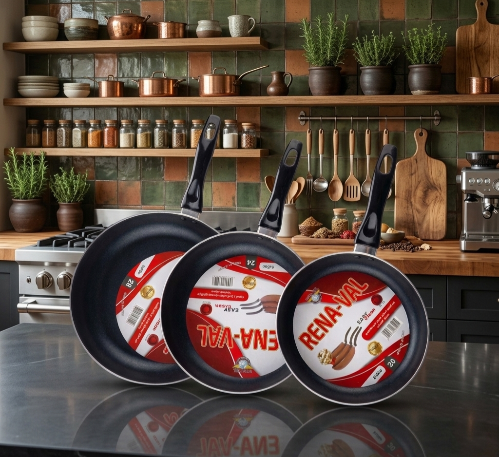 لأن مطبخك يستحق الأفضل، نقدم لكِ مجموعة مقالي RENA-VAL المتكاملة. صُممت خصيصاً لتمنحكِ تجربة طهي احترافية بفضل تقنية Easy Clean التي تضمن عدم التصاق الطعام وسهولة فائقة في التنظيف.