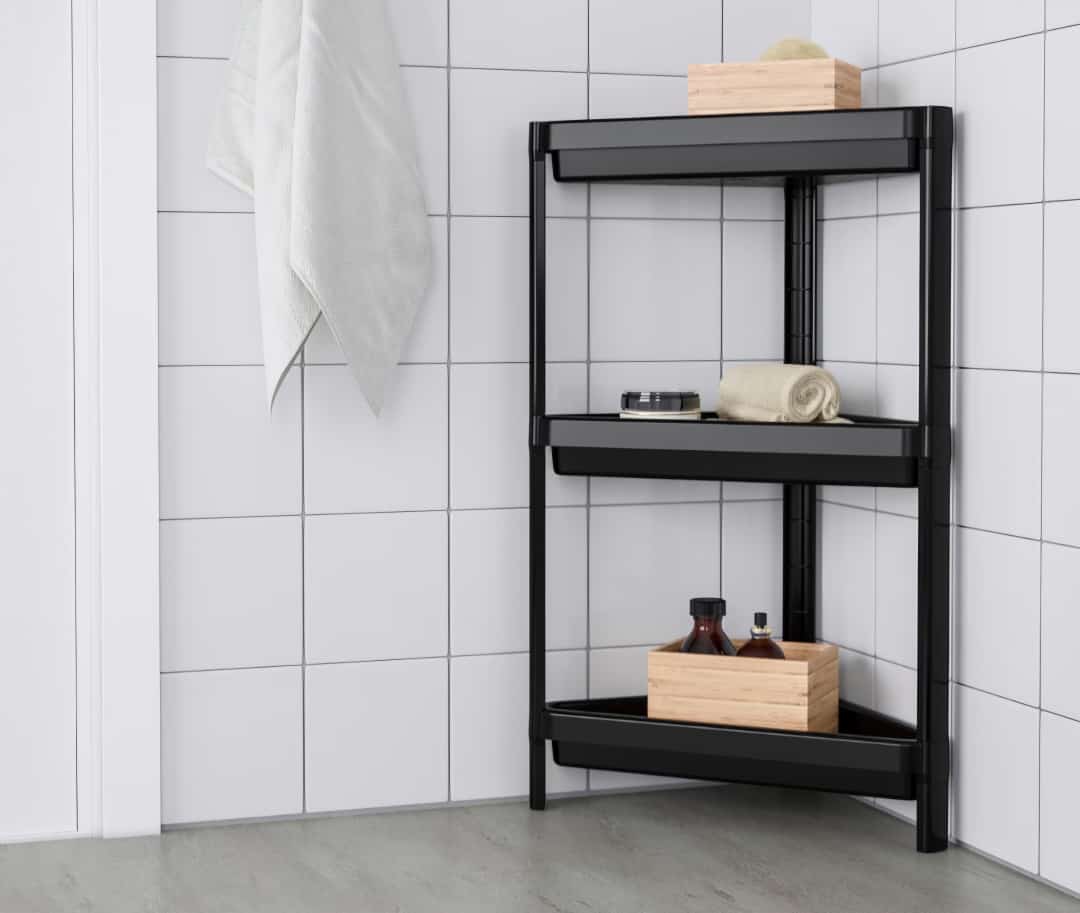 هل تعاني من ضيق المساحة في الحمام أو المطبخ؟ اكتشف الحل الأمثل مع منظم الزوايا العصري ذو الثلاث طبقات. بتصميمه الانسيابي ولونه الأسود الفاخر، يجمع هذا الرف بين العملية والجمال ليمنحك ترتيباً مثالياً في أقل مساحة ممكنة
