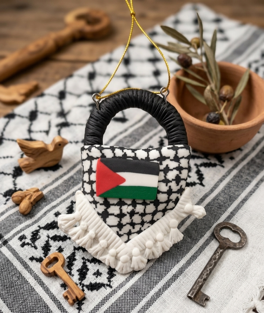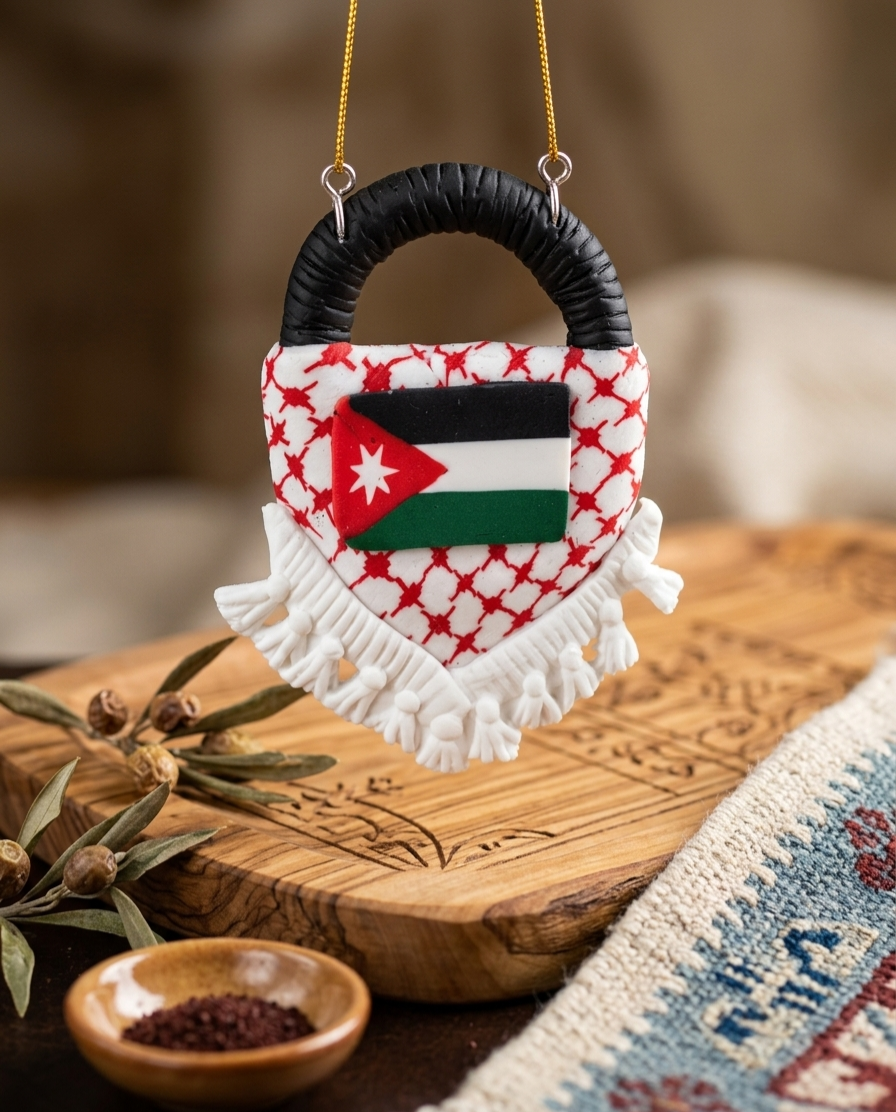 أضف لمسة من الفخامة الوطنية لمقتنياتك. تعليقات “الكوفية والشماغ” المصممة بعناية فائقة لتعكس جمال التفاصيل العربية.